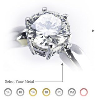 Engagement rings are commonly made from three metals: platinum, white gold, or yellow gold. Each has its unique atributes: