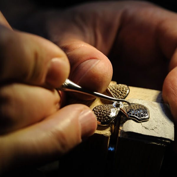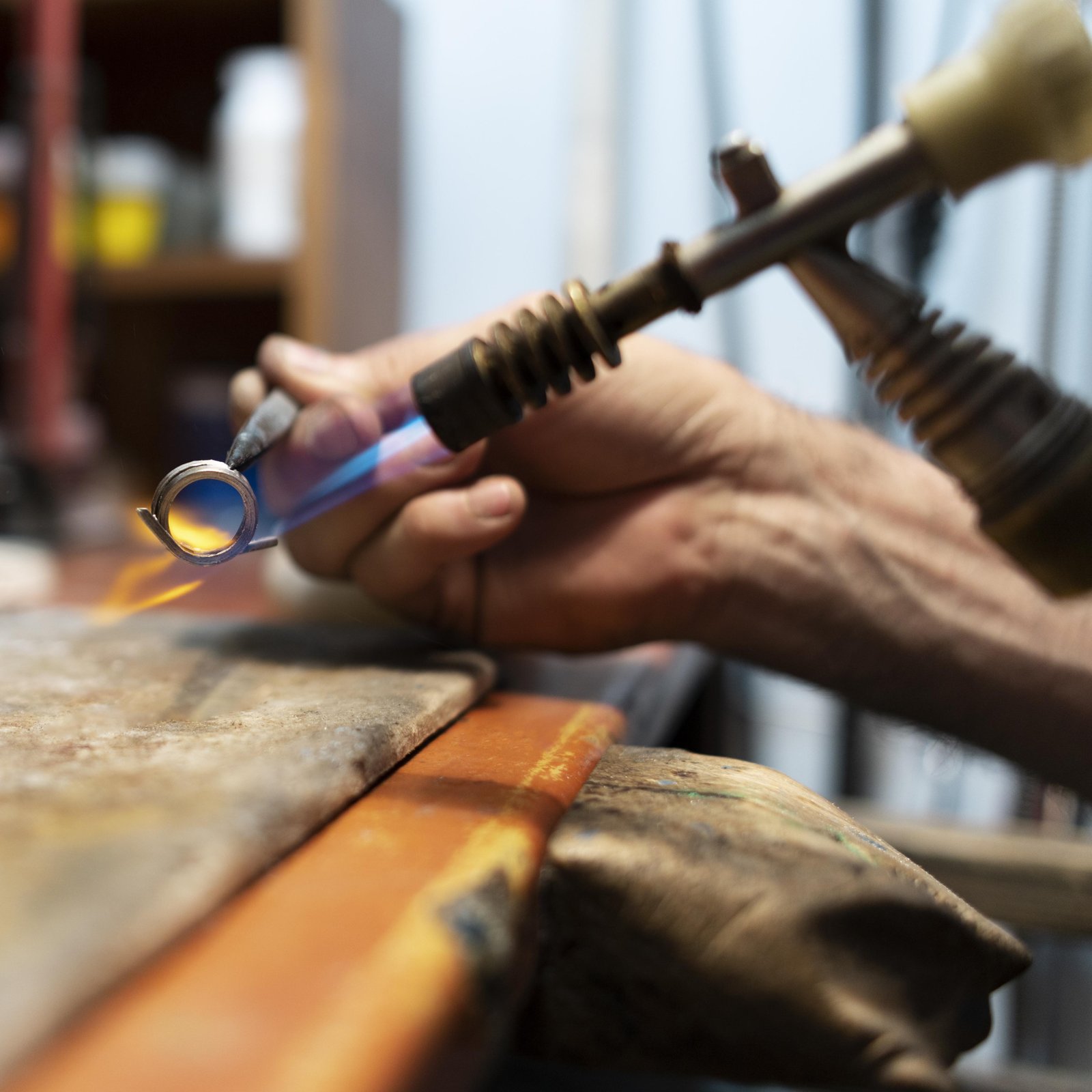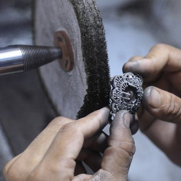 1. Buffing and Polishing: Using different sized and shaped buffs and brushes, every part of the jewelry is polished, from the inside to underneath the gallery.
