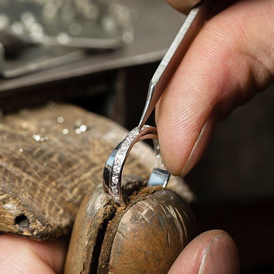 specifications. These components are then assembled and adjusted to fit the desired center stone