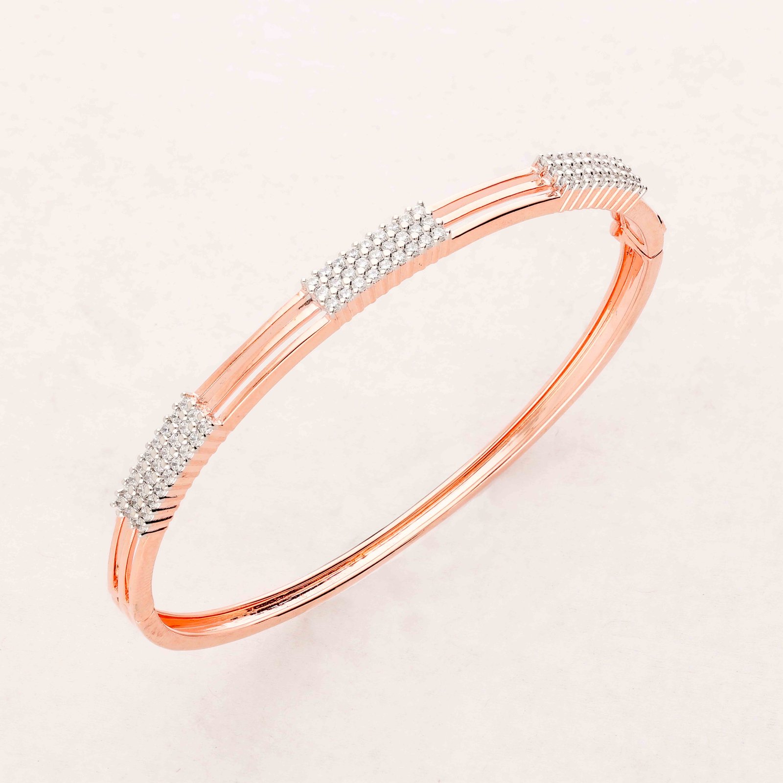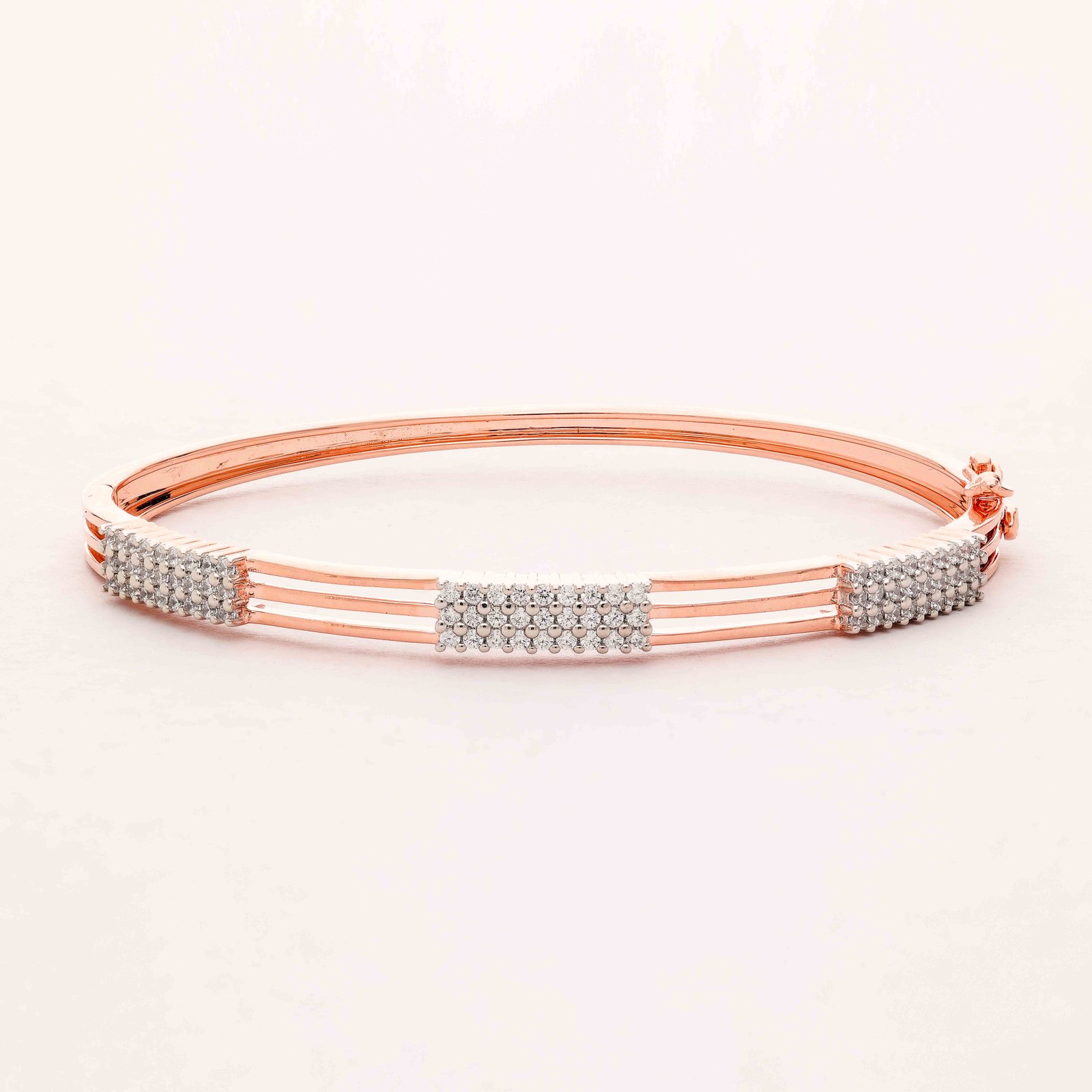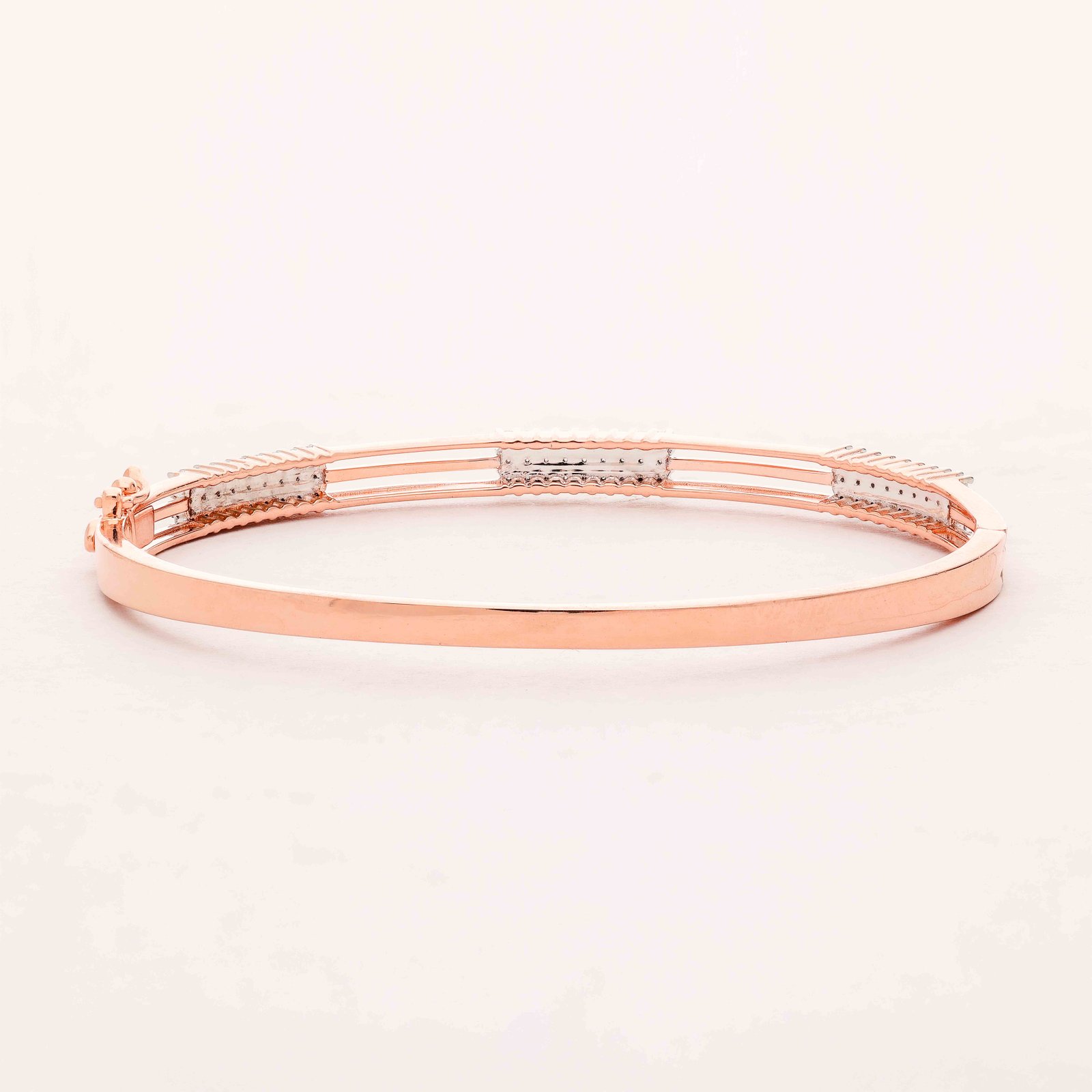This exquisite bracelet, crafted from high-quality rose gold, is adorned with meticulously arranged diamonds that add a touch of elegance and sparkle. Its sleek design ensures a comfortable fit while the radiant diamonds make it a perfect choice for special occasions.