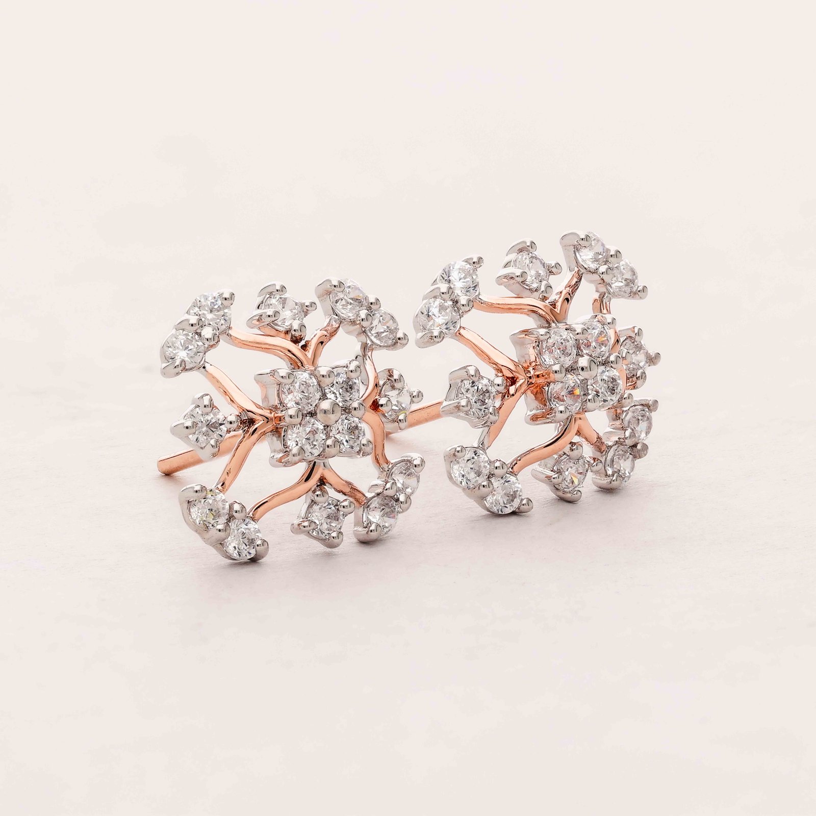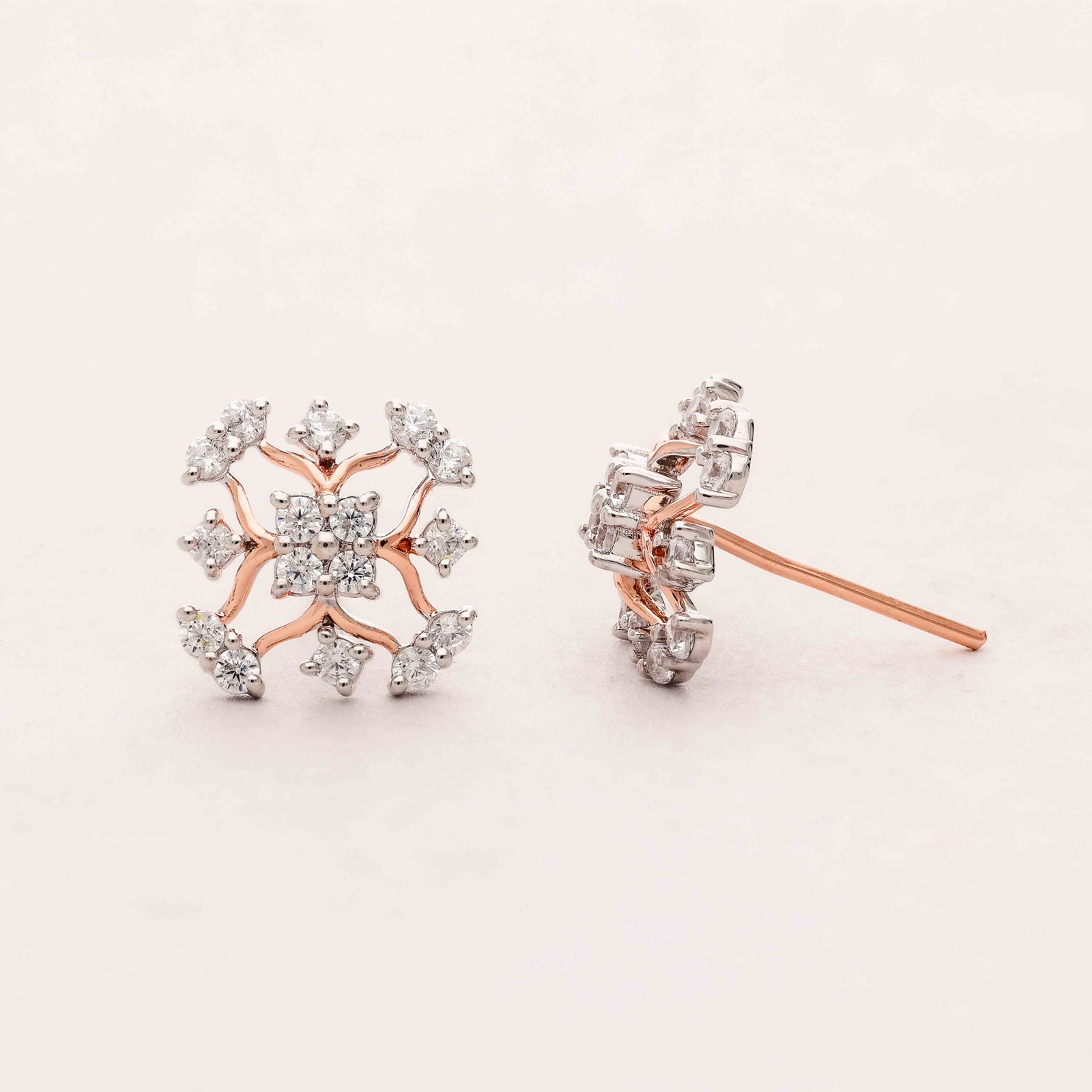 These exquisite earrings, crafted in a delicate snowflake design, feature premium quality diamonds set in rose gold. Each piece is designed to capture the light from every angle, ensuring a sparkling display that exemplifies elegance and sophistication.