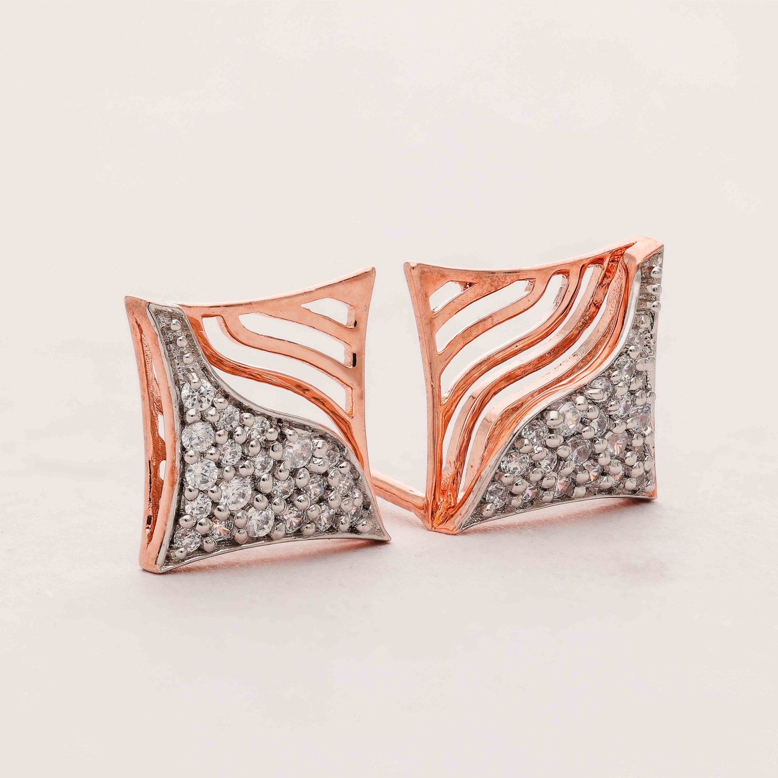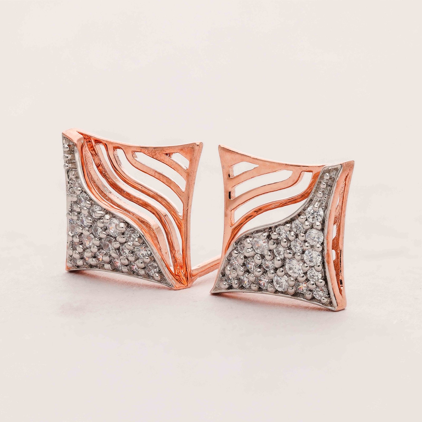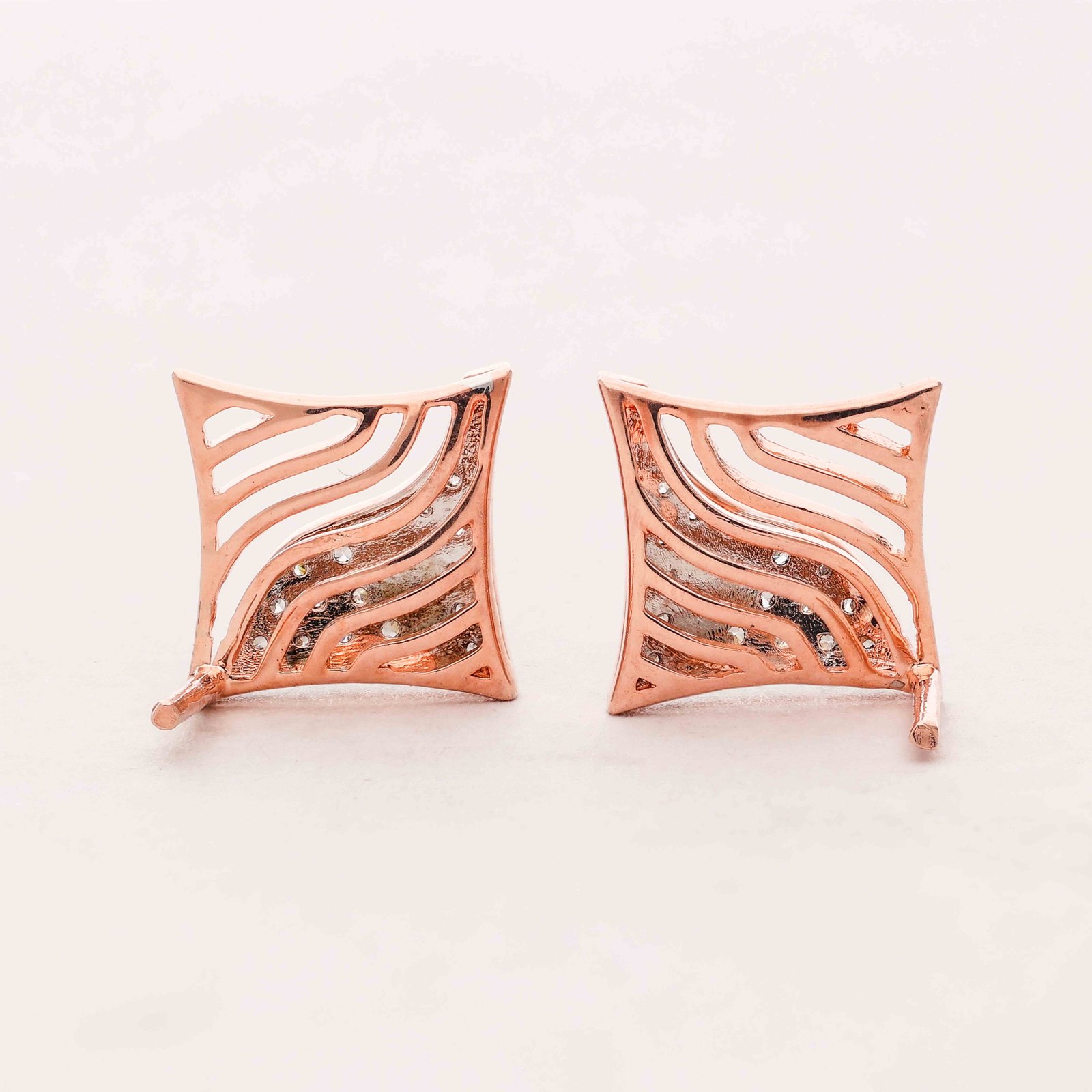 Unleash your inner elegance with these stunning earrings, featuring a unique wave design crafted in rose gold, adorned with sparkling diamonds that capture the light from every angle. A perfect blend of modern style and timeless grace.