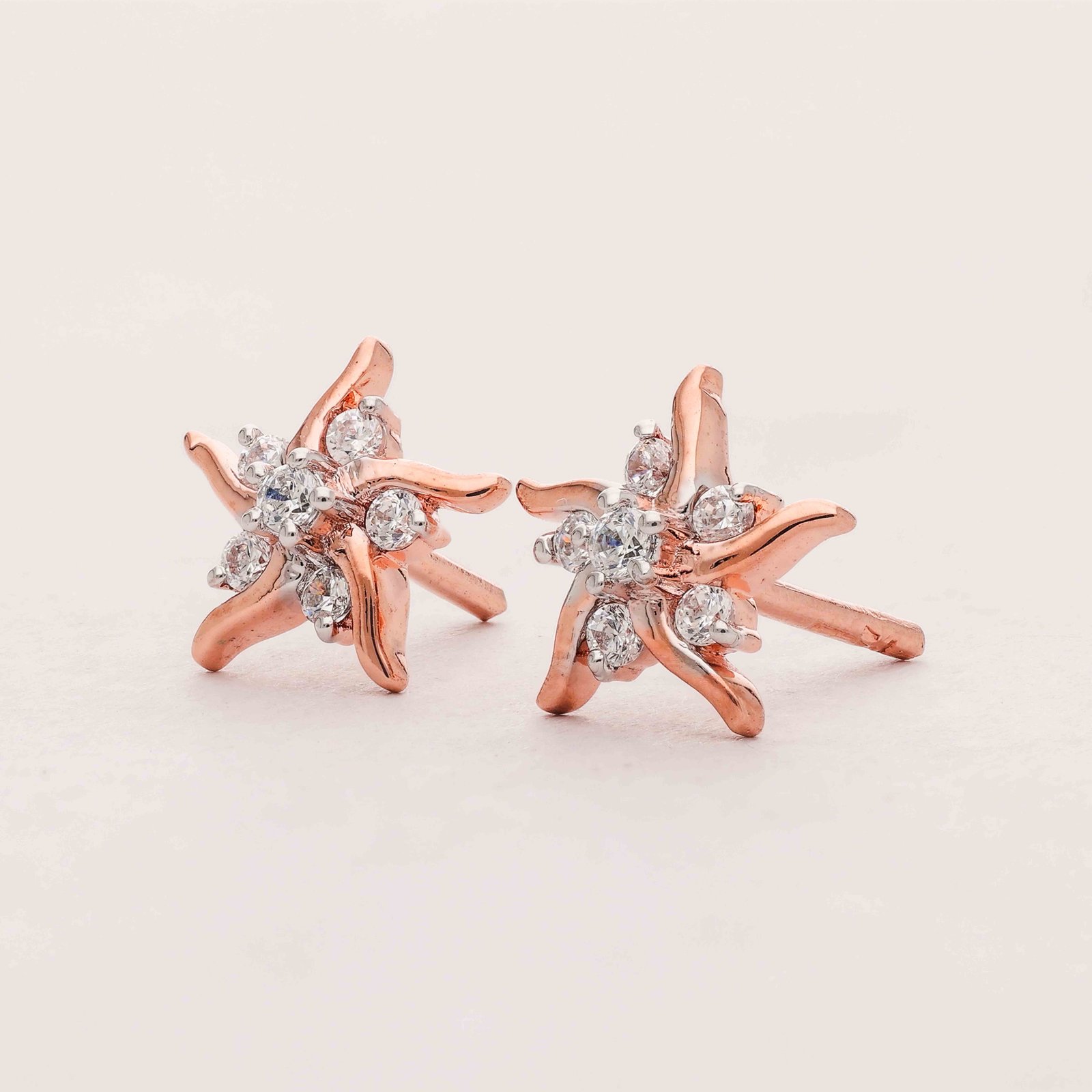 These exquisite earrings are a blend of classic elegance and modern design. Each piece features a radiant starburst pattern adorned with sparkling diamonds, encased in a delicate rose gold frame. The intricate design and gleaming stones offer a luxurious touch, making these earrings the perfect accessory for special occasions.