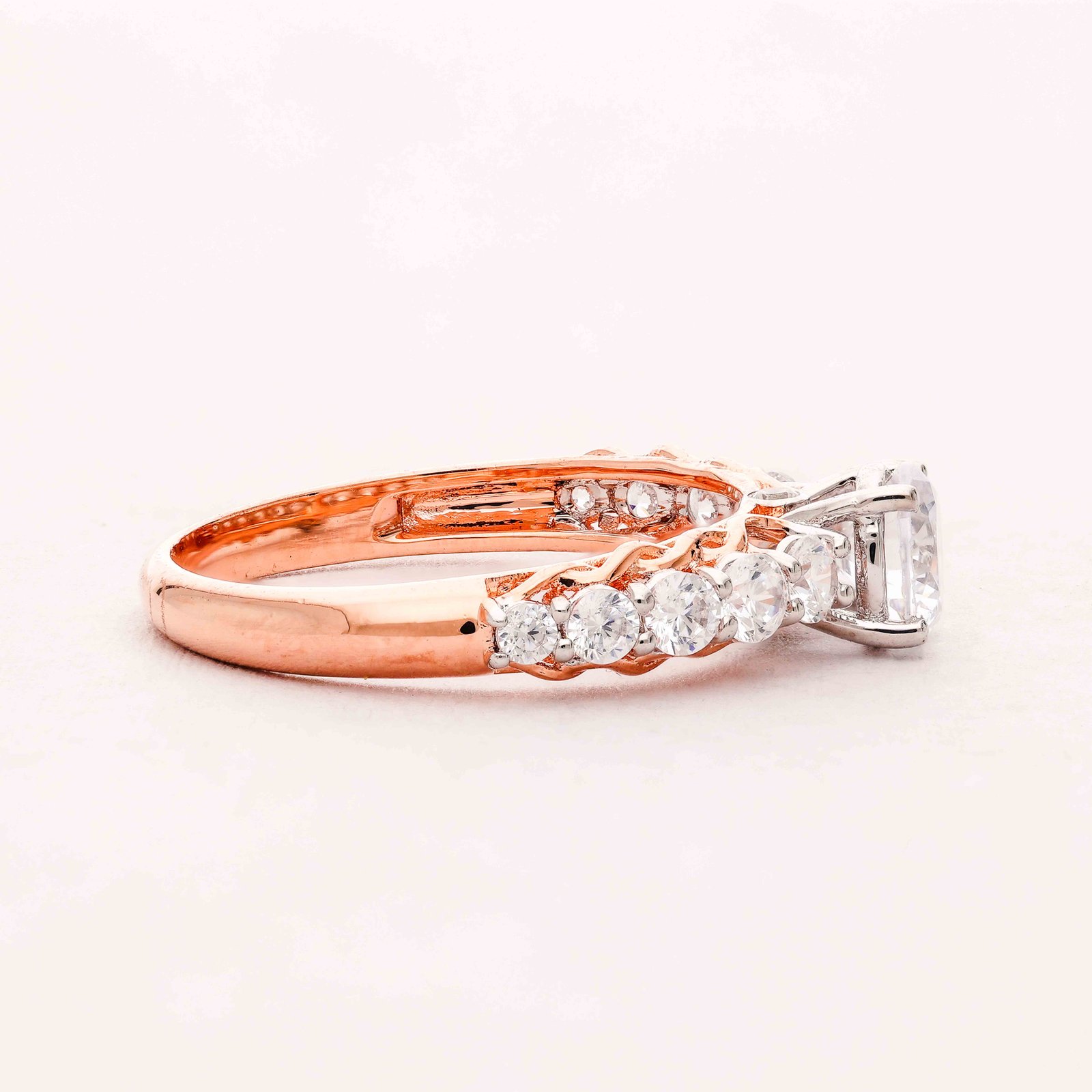 The Elegant Radiance Diamond Ring is a masterpiece of exquisite craftsmanship and design. Featuring a stunning central diamond, meticulously cut to showcase its brilliant sparkle, surrounded by a band adorned with intricate diamond detailing. The rose gold setting adds a touch of warmth, enhancing the radiance of the diamonds. This ring is not just a piece of jewelry but a work of art that symbolizes eternal love and elegance.