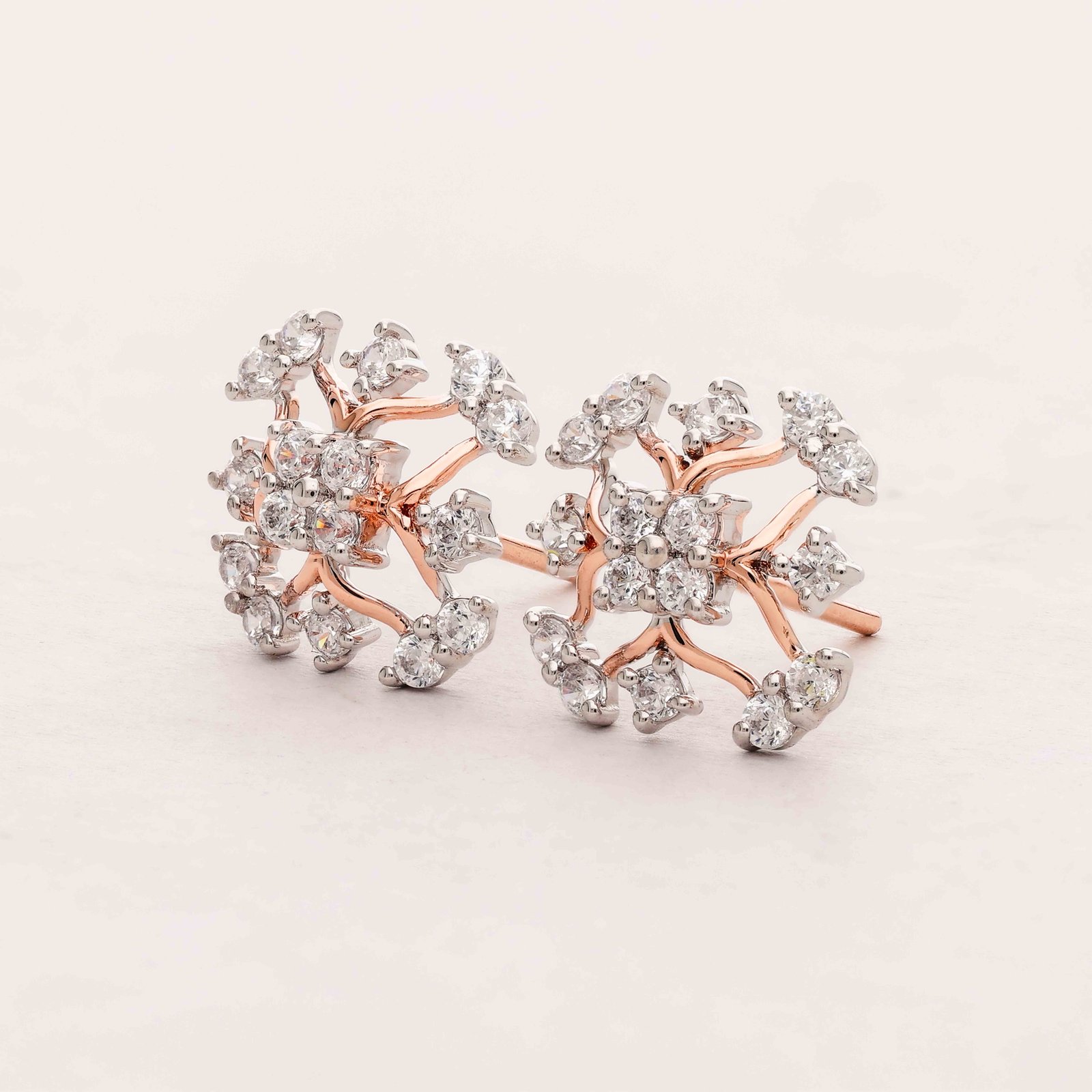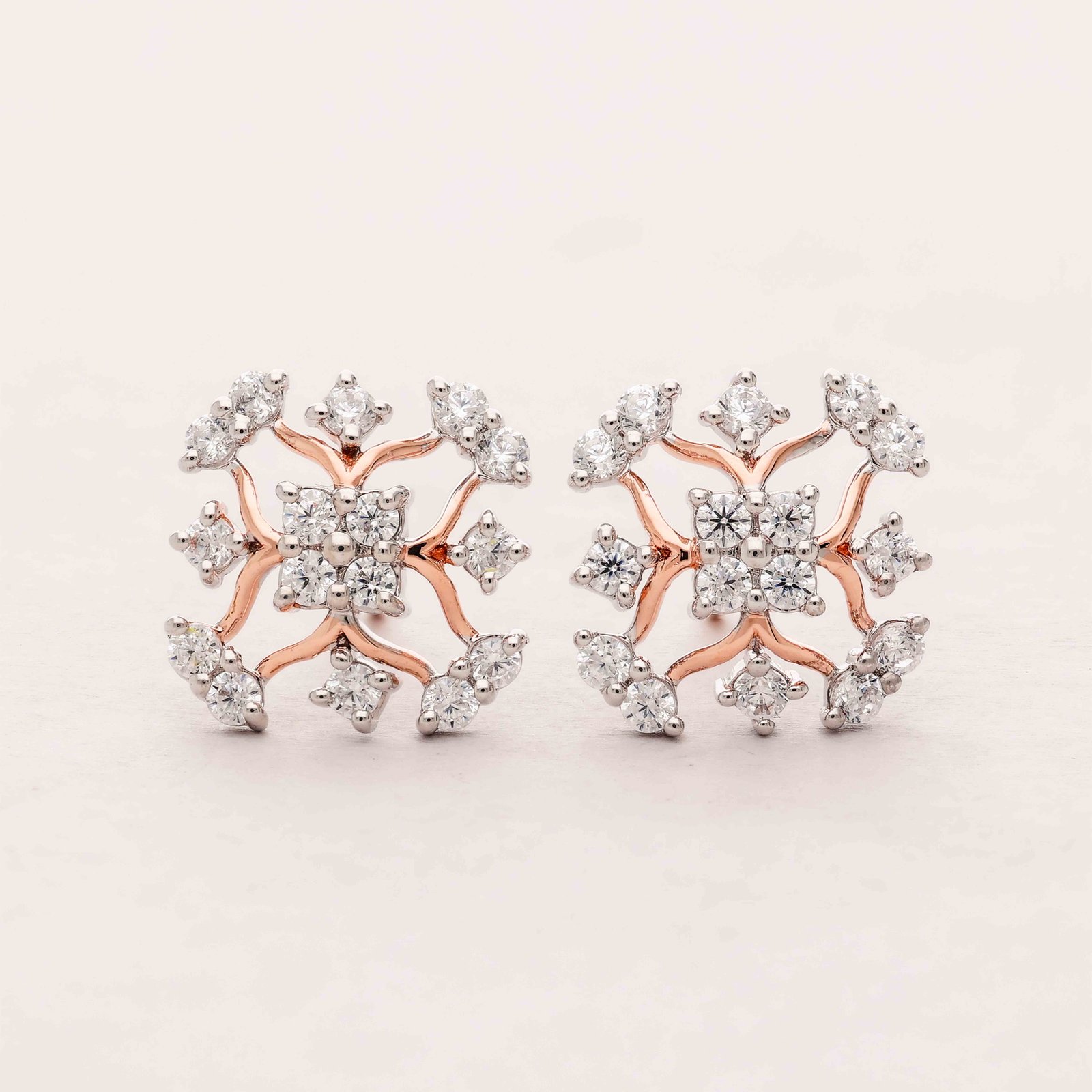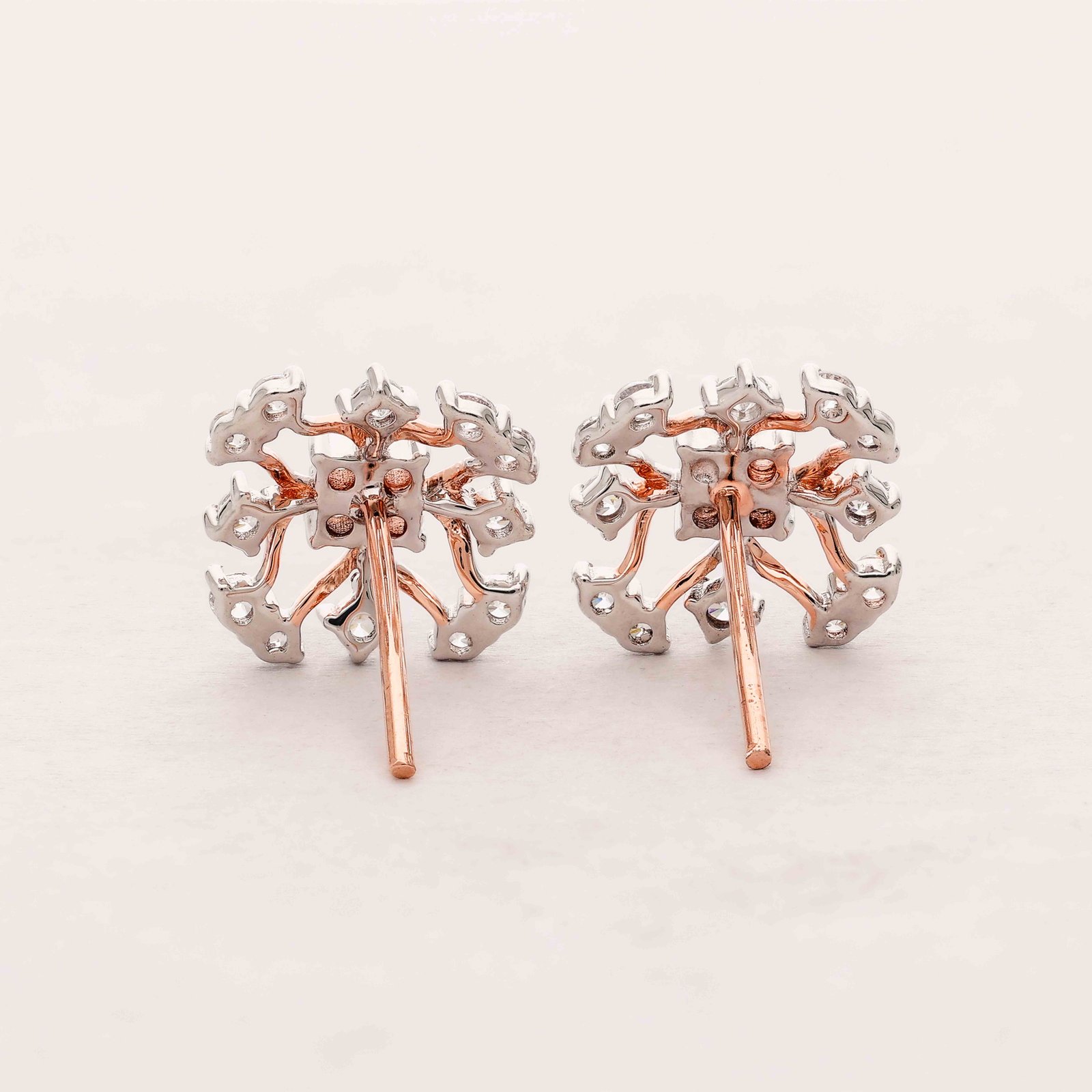 These exquisite earrings, crafted in a delicate snowflake design, feature premium quality diamonds set in rose gold. Each piece is designed to capture the light from every angle, ensuring a sparkling display that exemplifies elegance and sophistication.